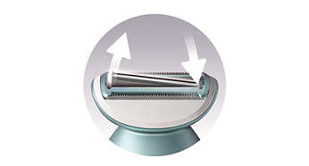 Ruchoma siateczka zapewnia równomierne golenie Ruchoma siateczka przesuwa się po nierównościach i zaokrągleniach w naturalny sposób, zachowując bliski kontakt ze skórą w celu zapewnienia równomiernego golenia. |