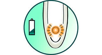 Wskaźnik niskiego poziomu naładowania akumulatora Wskaźnik niskiego poziomu naładowania akumulatoraWskaźnik niskiego poziomu naładowania akumulatora Informuje o niskim poziomie naładowania baterii i przypomina o konieczności naładowania urządzenia przed następnym goleniem. |