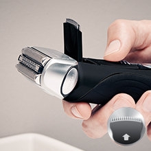 Możesz łatwo czyścić swoją golarkę pod bieżącą wodą lub golić się pod prysznicem.