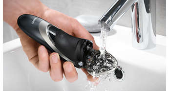 | Golarkę wystarczy opłukać Wystarczy otworzyć głowicę i dokładnie opłukać ją pod strumieniem bieżącej wody. |