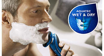 | System Aquatec zapewnia golenie na sucho i na mokro Zastosowanie w golarce elektrycznej uszczelnienia Aquatec pozwala wybrać sposób golenia. Można zdecydować się na wygodne golenie na sucho lub odświeżające golenie na mokro z użyciem żelu lub pianki, tak by dodatkowo ochronić skórę. |