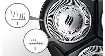 Szczeliny i otwory wychwytują nawet najmniejsze włoski Ostrza DualPrecision komfortowo golą długie włoski i krótki zarost. Służą do tego odpowiednio szczeliny i otwory. |