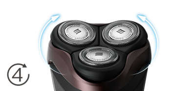 | Głowice poruszają się w 4 kierunkach, co ułatwia dokładne golenie Głowice Flex poruszające się niezależnie w 4 kierunkach dostosowują się do każdej krzywizny twarzy i ułatwiają golenie zarostu nawet na szyi i dolnej szczęce. |