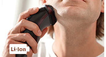 Maksymalna moc przez lata Dłuższe golenie po każdym ładowaniu. Golarka będzie mieć taką samą moc przez lata dzięki naszemu wydajnemu i efektywnemu akumulatorowi litowo-jonowemu. |