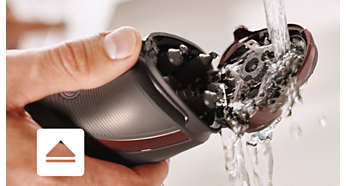 Golarkę można płukać pod bieżącą wodą Wystarczy otworzyć głowicę i dokładnie opłukać ją pod strumieniem bieżącej wody. |