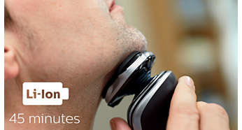 Do 45 minut bezprzewodowego golenia Otrzymasz blisko 45 minut czasu pracy — to około 15 cykli golenia — po jednogodzinnym ładowaniu. Możesz także wybrać golenie podłączonym urządzeniem. |