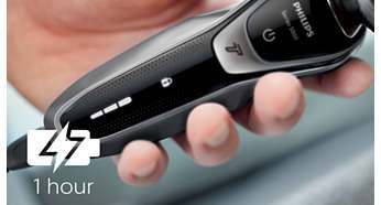 Czas ładowania: 1 godz. Dłuższe golenie po każdym ładowaniu dzięki wydajnemu, efektywnemu i trwałemu akumulatorowi litowo-jonowemu. Szybkie ładowanie przez 5 minut zapewnia wystarczającą ilość energii na jeden cykl golenia.. |