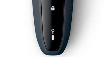 | 1-poziomowy wskaźnik baterii i wskaźnik blokady podróżnej Intuicyjny wyświetlacz pokazuje ważne informacje i pozwala w pełni wykorzystać potencjał golarki: — 1-poziomowy wskaźnik naładowania akumulatora — Wskaźnik konieczności czyszczenia — Wskaźnik niskiego poziomu naładowania akumulatora — Wskaźnik wymiany głowic — Wskaźnik blokady podróżnej |