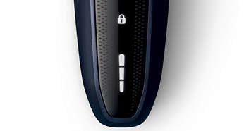 3-poziomowy wskaźnik baterii i wskaźnik blokady podróżnej Intuicyjny wyświetlacz pokazuje ważne informacje i pozwala w pełni wykorzystać potencjał golarki: — 3-poziomowy wskaźnik naładowania akumulatora — Wskaźnik konieczności czyszczenia — Wskaźnik niskiego poziomu naładowania akumulatora — Wskaźnik wymiany głowic — Wskaźnik blokady podróżnej |