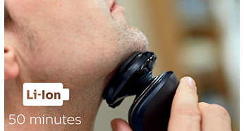 | Do 50 minut bezprzewodowego golenia Otrzymasz blisko 50 minut czasu pracy — to około 17 cykli golenia — po jednogodzinnym ładowaniu. Możesz także wybrać golenie podłączonym urządzeniem. |