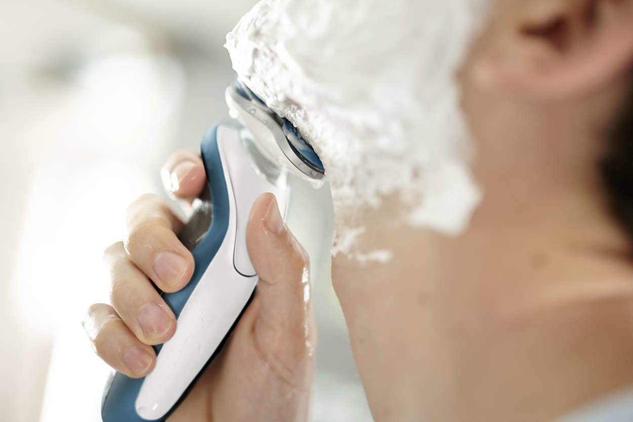 Dzięki uszczelnieniu AquaTec możesz wybrać wygodne golenie na sucho lub odświeżające golenie na mokro Wybierz preferowany sposób golenia. Uszczelnienie AquaTec umożliwia wybór szybkiego, a jednocześnie komfortowego golenia na sucho lub golenia na mokro — z użyciem żelu lub pianki — nawet pod prysznicem.. |