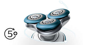 | Głowice z łatwością poruszają się w 5 kierunkach, co zapewnia dodatkowy komfort Głowice DynamicFlex bez trudu poruszają się w 5 kierunkach, podążając za każdą krzywizną twarzy i szyi, co zapewnia wygodniejsze golenie. |