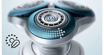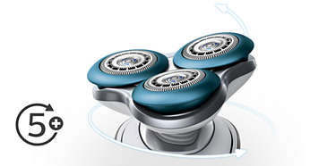 Głowice z łatwością poruszają się w 5 kierunkach, co zapewnia dodatkowy komfort Głowice DynamicFlex bez trudu poruszają się w 5 kierunkach, podążając za każdą krzywizną twarzy i szyi, co zapewnia wygodniejsze golenie. |