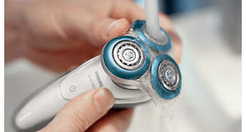 | Golarkę można płukać pod bieżącą wodą Wystarczy otworzyć głowicę golarki, aby dokładnie wypłukać ją pod bieżącą wodą. |