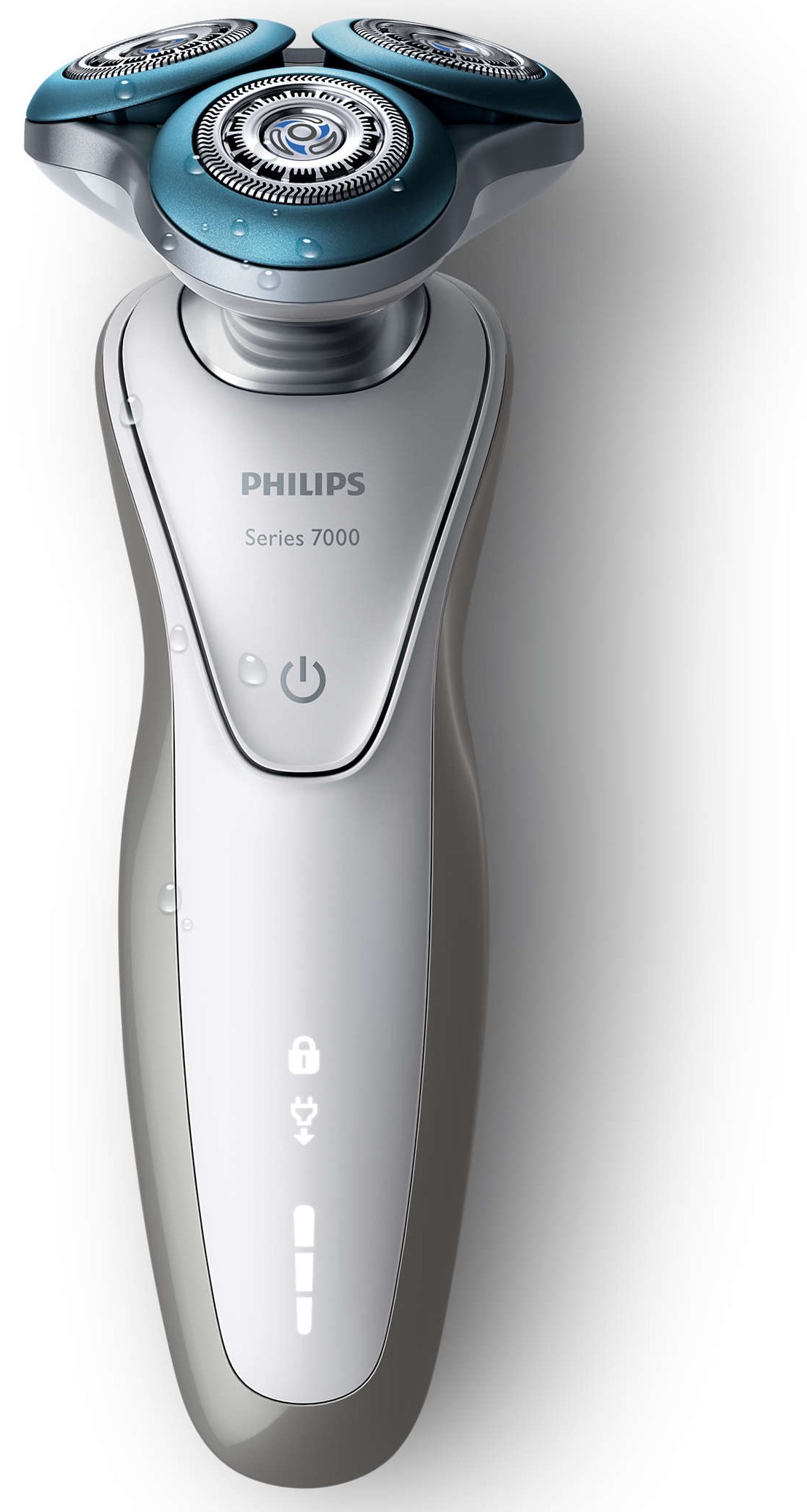 | Series 7000. Dokładne golenie dla skóry wrażliwej. Efekt: Gładka skóra bez podrażnień. -Do 50 min działania po 1 godz. ładowania -Pierścienie Comfort -Szczot. do oczyszcz. i trymer do brody |