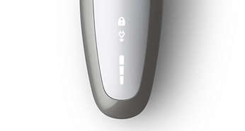 Intuicyjny wyświetlacz ułatwia korzystanie z funkcji Intuicyjny wyświetlacz pokazuje ważne informacje i pozwala w pełni wykorzystać potencjał golarki: — 3-poziomowy wskaźnik naładowania akumulatora — Wskaźnik konieczności czyszczenia — Wskaźnik niskiego poziomu naładowania akumulatora — Wskaźnik wymiany głowic — Wskaźnik blokady podróżnej |