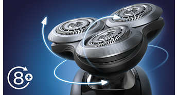 | Głowice poruszają się w 8 różnych kierunkach, co pozwala uzyskać doskonałe efekty 8-kierunkowe głowice ContourDetect idealnie dopasowują się do kształtu twarzy i szyi. Wychwycisz 20% więcej włosów za każdym pociągnięciem, dzięki czemu golenie będzie niezwykle dokładne i gładkie. |