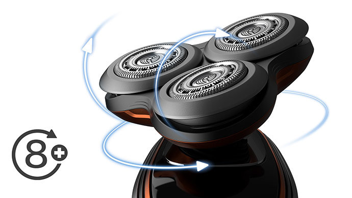 8-kierunkowe głowice ContourDetect idealnie dopasowują się do kształtu twarzy i szyi. Wychwycisz 20% więcej włosów za każdym pociągnięciem, dzięki czemu golenie będzie niezwykle dokładne i gładkie.
