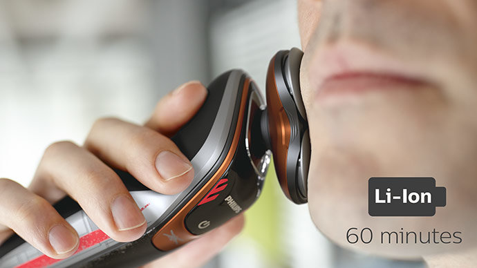 Dłuższe golenie po każdym ładowaniu dzięki wydajnemu, efektywnemu i trwałemu akumulatorowi litowo-jonowemu. Szybkie ładowanie przez 5 minut zapewnia wystarczającą ilość energii na jeden cykl golenia.