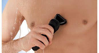 Uchwyt i nasadka do golenia ciała są wodoodporne. Wygodne przycinanie i golenie włosów na całym ciele, również pod prysznicem. |