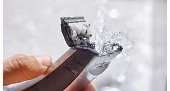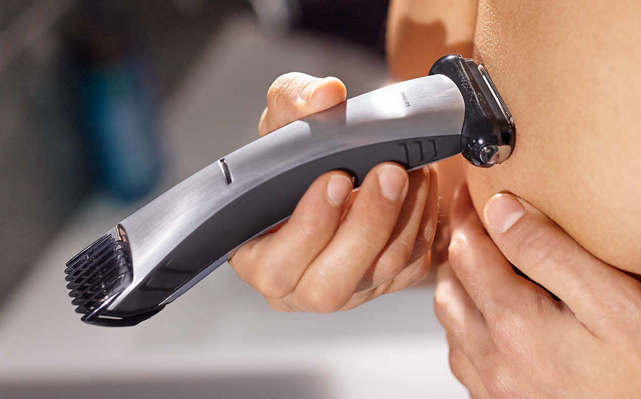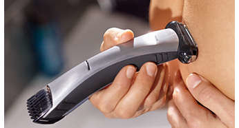 Łatwość czyszczenia i możliwość używania pod prysznicem Wygodne i dokładne przycinanie włosów także pod prysznicem. Golarka do ciała jest w 100% wodoodporna, dzięki czemu wystarczy ją opłukać po zakończeniu golenia. W przypadku dłuższych włosów przycinanie jest bardziej efektywne, gdy włosy są suche. |