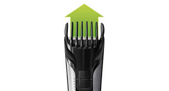 W zestawie regulowana nasadka grzebieniowa; przycina włosy do długości 3–11 mm Wbudowany trymer i regulowana nasadka grzebieniowa z 5 ustawieniami długości zostały opracowane, by zapewnić dodatkową moc pozwalającą na przycinanie nawet najgrubszych włosów. Aby zachować żądaną długość lub uzyskać naturalny wygląd, wystarczy wybrać ustawienie w przedziale 3–11 mm. Z kolei aby uzyskać efekt dokładniejszego golenia, można skorzystać z golarki po drugiej stronie. |