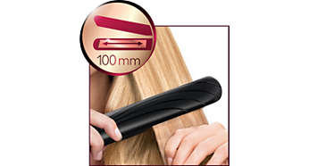 Długie płytki umożliwiają szybkie i łatwe prostowanie Dłuższe płytki zapewniają lepszy kontakt z włosami i pomagają osiągnąć doskonałe efekty prostowania w krótszym czasie. |