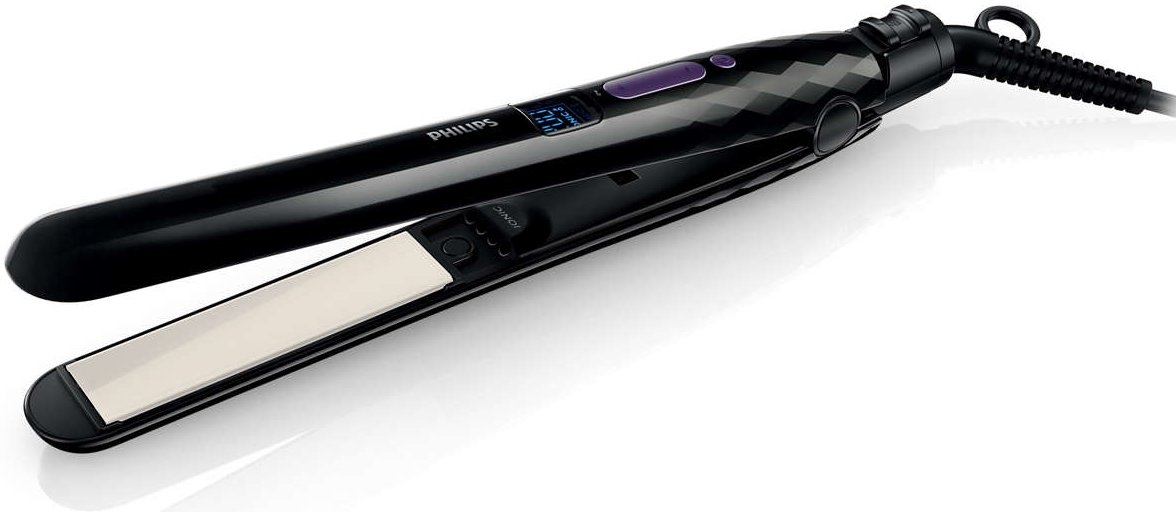 | 3 razy łagodniejsze działanie Prostownica do włosów z funkcją pielęgnacji jonowej -Płytki ceramiczne -Temperatura od 130 do 200°C -Pielęgnacja jonowa |