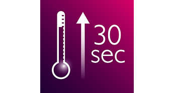 Krótki czas nagrzewania, gotowość do użycia po 30 sekundach Prostownica zapewnia krótki czas nagrzewania i jest gotowa do pracy po 30 sekundach |