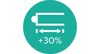 | 30% więcej miejsca na wałku do stylizacji długich lub grubych włosów Więcej miejsca na wałku do łatwiejszego kręcenia nawet długich lub grubych włosów. |