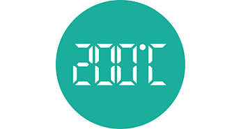 | 8 cyfrowych ustawień temperatury zapewnia pełną kontrolę Cyfrowy wyświetlacz z 8 ustawieniami temperatury daje pełną kontrolę, pozwalając dostosować temperaturę do typu włosów, aby chronić je przed uszkodzeniem. |