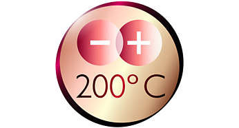 Maksymalna temperatura 200°C zapewnia doskonałe efekty modelowania Maksymalna temperatura 200°C gwarantuje doskonałe rezultaty nawet w przypadku grubych włosów i jest dla nich mniej szkodliwa. |