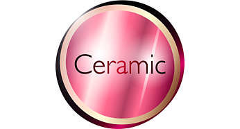 | Ochronna powłoka ceramiczna Ochronna powłoka ceramiczna zapewnia równomierne rozprowadzanie ciepła i jest mniej szkodliwa dla włosów, które pozostają miękkie i lśniące. |