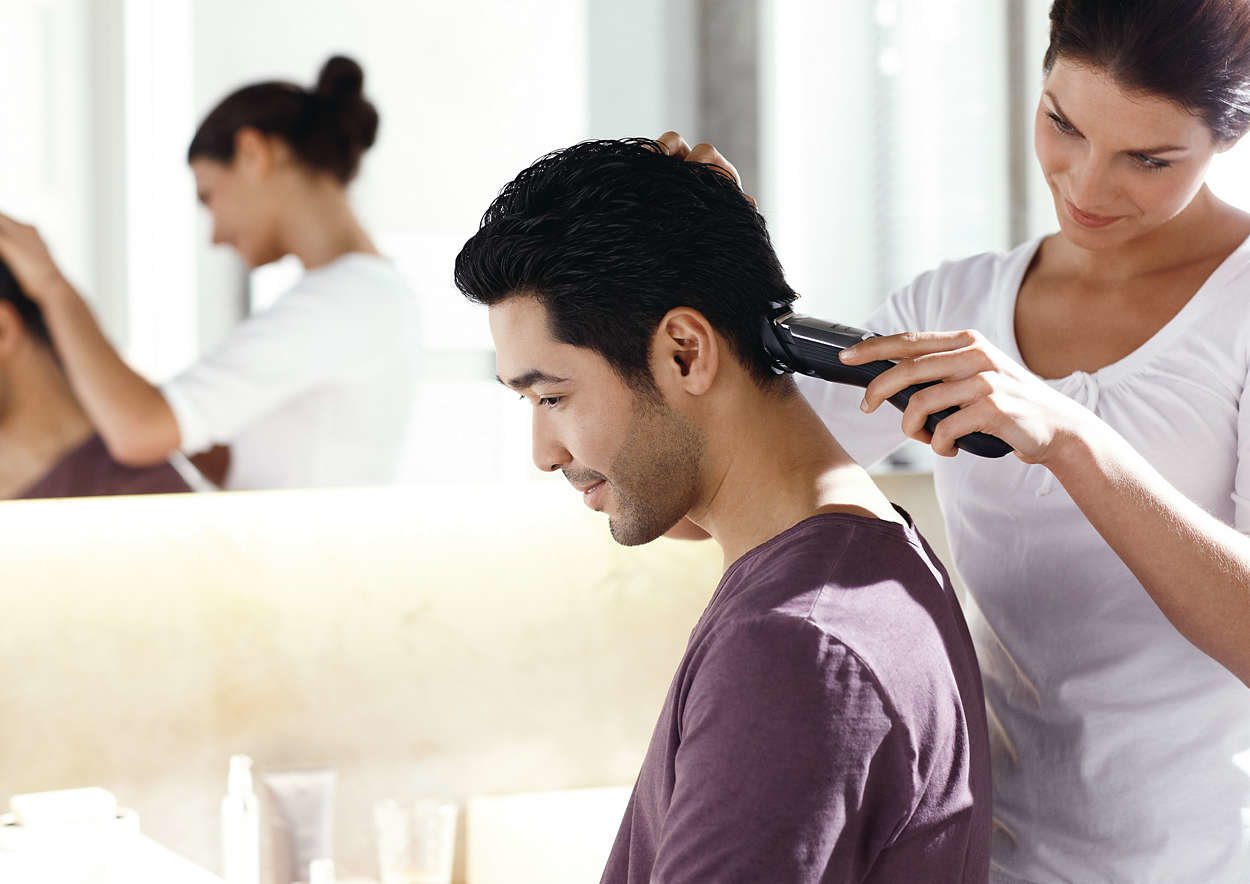12 blokowanych ustawień długości — od 0,5 mm do 21 mm Dwie nasadki grzebieniowe umożliwiają ustawienie długości od 1 mm do 21 mm. Różnica między kolejnymi ustawieniami wynosi dokładnie 2 mm. Można użyć specjalnej nasadki do strzyżenia na jeża… Można również zdjąć nasadkę i krótko przyciąć włosy do długości 0,5 mm. |