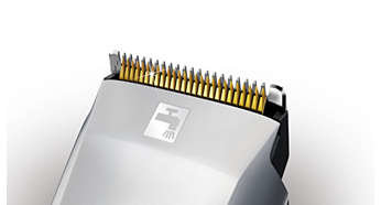 Doskonała jakość strzyżenia dzięki ostrzom pokrytym tytanem Zaawansowane ostrza pokryte tytanem gwarantują doskonałą jakość strzyżenia i długotrwałą ostrość |