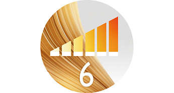 Sześć regulowanych ustawień szybkości i temperatury zapewnia pełną kontrolę Łatwa regulacja zapewnia pełną kontrolę i perfekcyjną stylizację. |