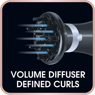 Większa objętość i loki Suszarka jest wyposażona w dyfuzor zwiększający naturalną objętość. Nadaje się idealnie do kręconych włosów, ułatwia ich układanie i uzyskanie żądanego wyglądu loków. |