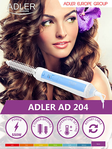 W cienkiej rączce zamontowano suszarkę do włosów o mocy 550 W, dopasowanej do przepływu powietrza.