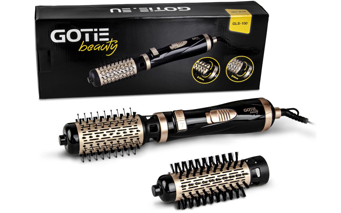 Suszarko-lokówka GOTIE GLS-100B posiada dwie wymienne szczotki, które pozwalają na uzyskanie loków o różnej grubości. Dzięki temu możesz cieszyć się dokładnie taką fryzurą, o jakiej marzyłaś. Dodatkową zaletą dwóch szczotek dołączonych do zestawu jest także możliwość doboru średnicy do ilości włosów.