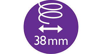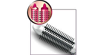| Termoszczotka o średnicy 38 mm zapewnia gładkie włosy Termoszczotka ma wyjątkowo dużą średnicę 38 mm. Szerokość wałka sprawia, że jest to idealne narzędzie do stylizacji pozwalające tworzyć gładkie fryzury i fale. |