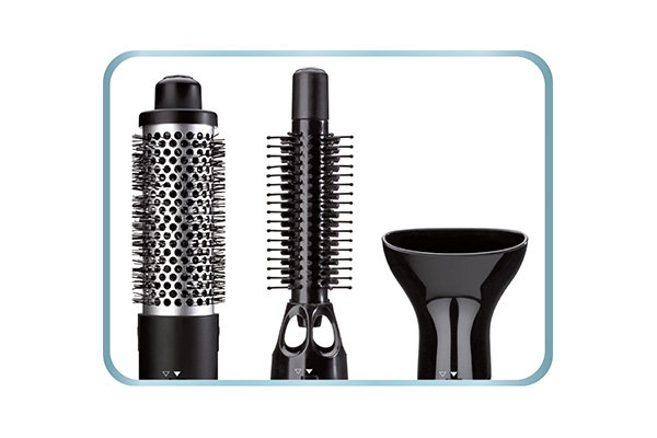| UKŁADANIE WŁOSÓW O ŚREDNIEJ DŁUGOŚCI I DŁUGICH, CIENKICH WŁOSÓW I GRZYWEK Plastikowa szczotka o średnicy 20 mm do łatwego układania krótkich włosów i wykończenia fryzury. Można jej używać do zwiększania objętości grzywek. |