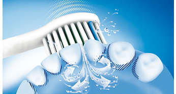 Dynamiczny sposób czyszczenia Sonicare kieruje płyn między zęby Wyjątkowy, dynamiczny sposób czyszczenia elektrycznej szczoteczki Philips Sonicare pozwala delikatnie i skutecznie dotrzeć głęboko między zęby i wzdłuż linii dziąseł. |