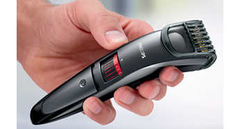 | Precyzja — 0,5 mm Wybierz najniższe ustawienie (0,5 mm), aby uzyskać idealny zarost. |