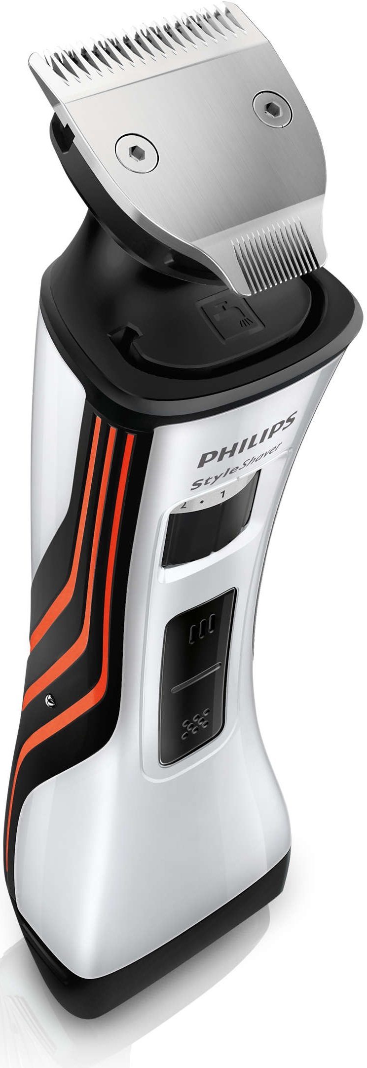 | Wykreuj swój styl Możesz przycinać, modelować i golić — stwórz własny styl -Ustawienia co 0,5 mm -Dwustronny trymer - do 75 min działania po 4 godz. ładowania -Golarka z podwójną siateczką |