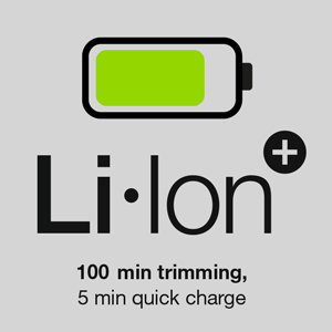 100 min strzyżenia = pełne naładowanie w 1 godzinę 5 min (tryb szybki) |