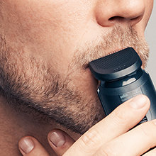 Aby stworzyć precyzyjne linie i kontury zarostu na szyi i policzkach, posłuż się samą głowicą trymera Braun lub maszynką Gillette Fusion5 ProGlide.