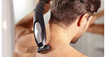 | Dokładne przycinanie, wygodne golenie Nawet w trudno dostępnych miejscach -System komfortu skóry -3 nasadki grzebieniowe, 3–7 mm - do 50 min działania po 1 godz. ładowania -Nasadka do pleców |