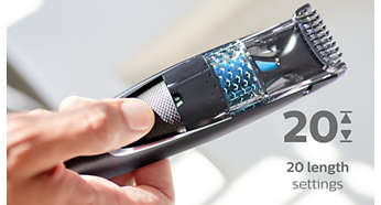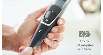 około 60 min działania po 1 godz. ładowania; możliwość podłączenia do sieci Ładuj trymer do brody przez 1 godzinę, aby uzyskać do 60 minut działania bezprzewodowego. Jeśli potrzebujesz więcej energii do przycinania, możesz po prostu podłączyć trymer do sieci elektrycznej. Trymer został zaprojektowany z myślą o zasilaniu akumulatorowym i sieciowym. |