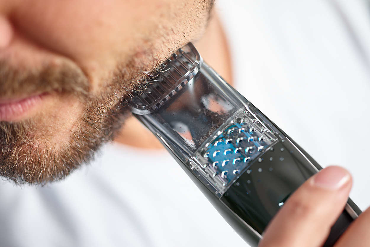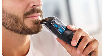 Mniej bałaganu dzięki wbudowanemu systemowi zasysania Z tym trymerem przytniesz brodę, wąsy i bokobrody bez bałaganu. Jego wydajny system zasysania wyłapuje włoski w miarę przycinania, ułatwiając utrzymanie porządku. |
