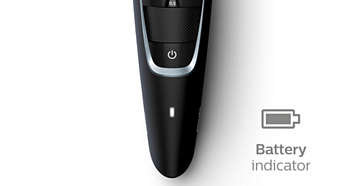 | Szybka kontrola stanu akumulatora trymera Wskaźnik akumulatora pokazuje poziom naładowania trymera podczas użytkowania lub ładowania oraz sygnalizuje, kiedy należy go podłączyć. |
